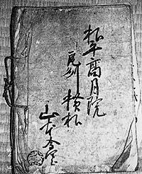 これは江戸時代の書物に書かれているわけですが、これを実証するような資料がいろいろ出てきました。ちょうど私が阿久比町史の編さんに関わっている時のことです。半田市在住の宮大工の子孫の家から「松平高月院尾州横松山本金四郎」と書かれた古文書が出てきました。これは、木取り帳なのですが、松平高月院というのはどこだろうとよくよく考えて見ますと、徳川家康の先祖・松平家の菩提寺にあたるのがこの松平高月院でした。つまり豊田市の松平郷の徳川家ゆかりのお寺を、知多の宮大工が建てていたという事がわかったのです。これは、確か寛政年間の資料でした。数年前この松平高月院に行ってきましたが、その当時のものなのか、極彩色の名残りのとても風格ある建物でした。